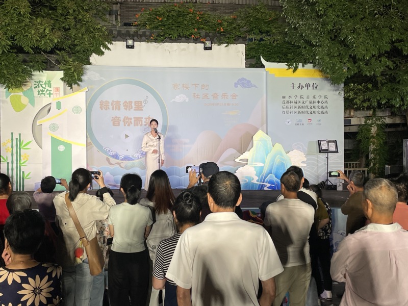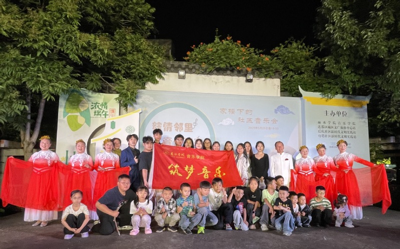 传统节日端午节来临之际,音乐学院与莲都区城区文广旅体中心站、后庆社区、灯塔社区联合举办了一场以“粽情邻里,音你而来”为主题的社区音乐会。这场活动不仅是音乐学院“实践育人”教学理念的生动实践,更是校社文化共建新模式的积极探索与成功范例。