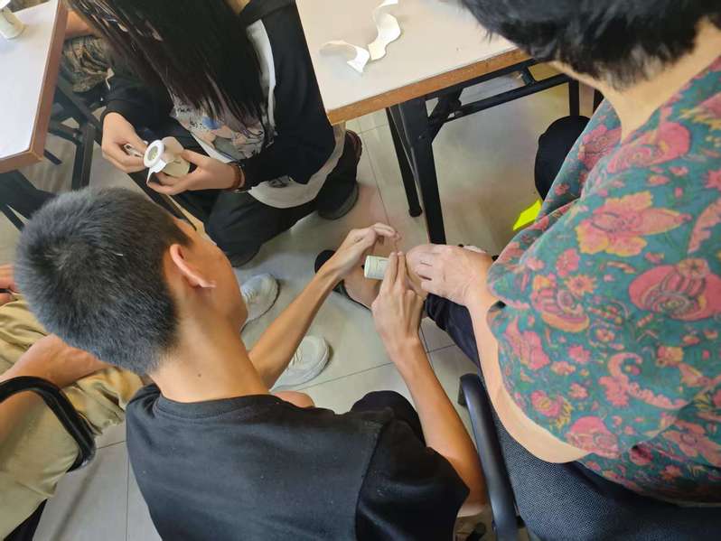 义诊环节人气高涨。团队成员为社区居民提供了推拿按摩、艾灸等多项服务。团队成员耐心询问居民的身体状况,针对不同症状提出个性化的中医调理方案,并指导居民正确使用中医保健方法。此外,团队还现场展示了艾灸、推拿按摩等中医特色疗法,让居民直观感受中医药的独特魅力。