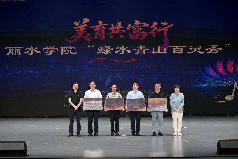 本次展演活动展示了“大中小学思政一体化”建设成果,云和县第三中学云之梦健美操队队员们以矫健身姿演绎《炫舞青春》,云和县实验小学的同学们则用童趣舞步表现出研学趣味。展演中,还举行了“丽水学院音乐学院美育协同创新实践基地”授牌仪式,云和县第二中学、云和县第三中学、云和县实验小学、云和县江滨小学代表上台接牌。丽水学院将以本次展演为契机,进一步发挥校地协同优势,通过支部共建、师资培育、社会实践等形式,赋能乡村美育,真正种下“带不走的艺术种子”。