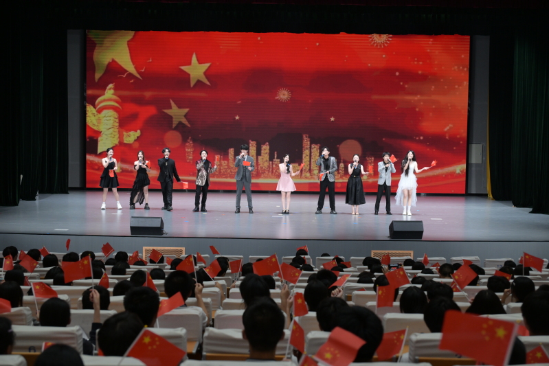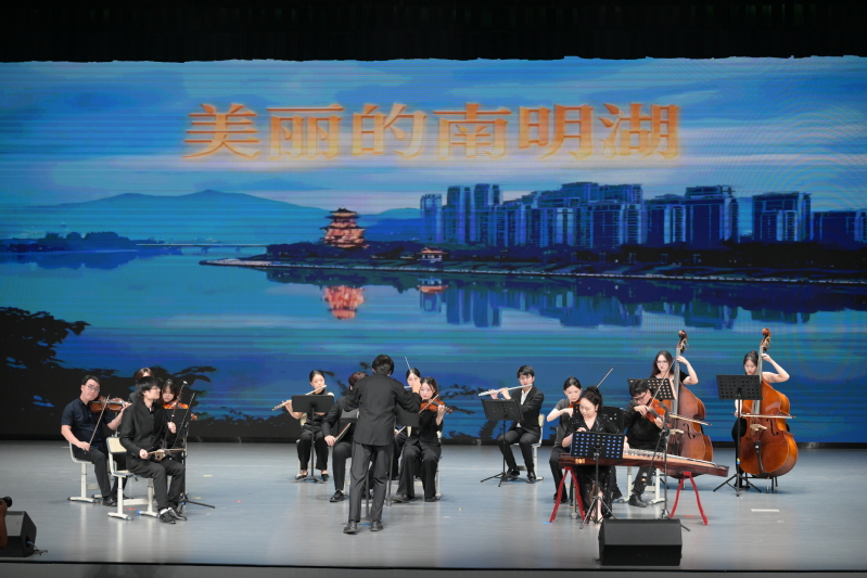 舞台上,演员们以赤诚之心演绎红色经典。《春风十万里》的悠扬歌声穿越时空,诉说着新时代的蓬勃朝气;民乐团以二胡与鼓点交织的《战马奔腾》,让观众仿佛置身于万马奔腾的草原战场,畲族群舞《畲·声响》以银饰叮咚与梯田云海的意象,展现民族文化的独特魅力;原创歌曲《云等风,我等你》则以援疆教师的视角,讲述坚守与奉献的动人故事。当《我爱你中国》的旋律响彻全场,台上台下齐声高歌,将整场演出推向高潮,在国庆前夕对祖国母亲送上了真挚祝福。