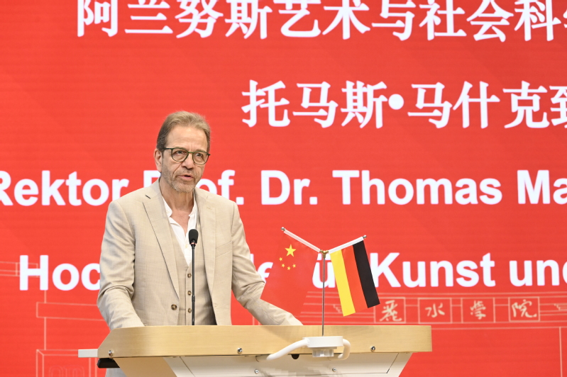 托马斯・马什克在致辞中高度认可两校合作的价值。他表示,阿兰努斯学院始终致力于艺术与社会科学的融合教育,此次与丽水学院的合作,将为两国学生搭建文化互鉴、学术共享的平台,期待双方以项目为起点,共同培养适应全球挑战的优秀人才。