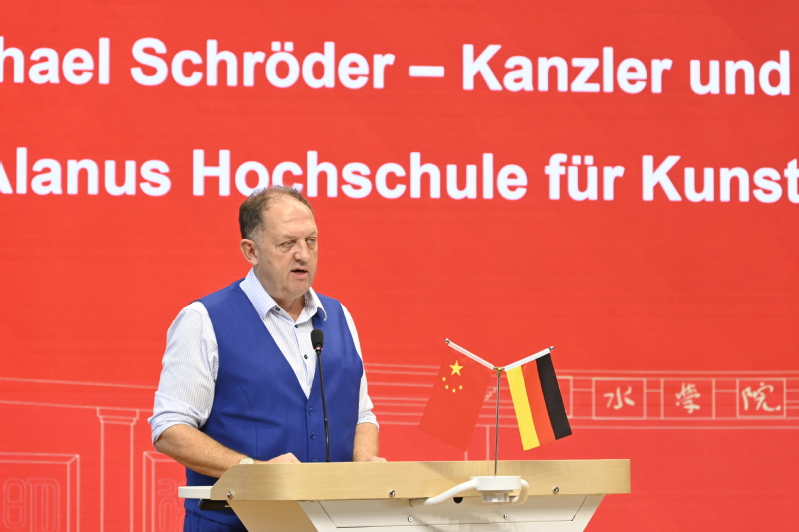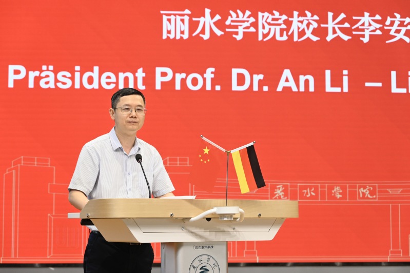 李安在致辞中指出,丽水学院与德国阿兰努斯艺术与社会科学学院的合作,是学校国际化办学进程中的重要里程碑,搭建起了“跨越山海、融汇东西”的教育桥梁。他对新生提出三点期望:一是以“博学”筑基,深植中国传统文化沃土,拥抱德国严谨学术体系与创新艺术理念,构建跨文化知识体系;二是以“审问”明辨,培养提问能力,主动与中德双方师长、同学交流,在思想碰撞中激发灵感;三是以“笃行”致远,补齐语言短板、夯实专业基础,在多元文化交融中成长为具备全球视野的新时代艺术人才。