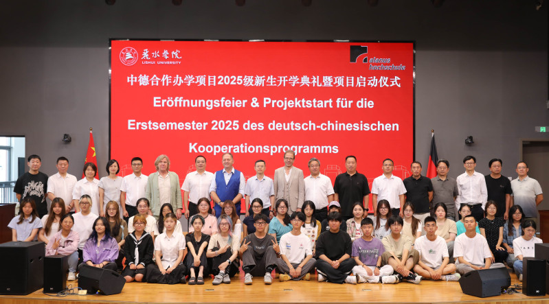 10月9日上午,丽水学院中德合作办学项目2025级新生开学典礼暨项目启动仪式在浙西南革命老区学前教育示范中心大楼报告厅隆重举行。丽水学院校长李安、副校长胡锋吉,德国阿兰努斯艺术与社会科学学院校长托马斯・马什克、董事会主席米歇尔・施罗德等德方代表团4人,丽水学院相关部门和学院负责人、双方教师代表及项目2025级全体新生共同出席。活动由副校长胡锋吉主持。
