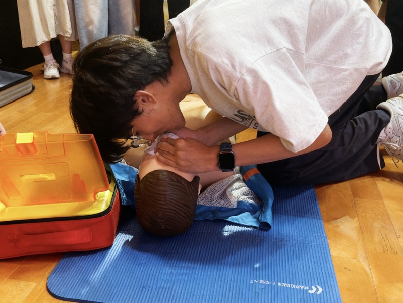 培训现场,学员们认真学习了心肺复苏(CPR)、自动体外除颤器(AED)使用、创伤包扎、常见急症现场处理等核心急救内容。在专业老师的指导下,大家积极进行实操演练,相互配合,现场学习氛围浓厚而热烈。许多新生表示,这堂“入学第一课”别开生面且意义深远,不仅学到了能救命的实用技能,更深刻体会到了医者仁心的初含义。