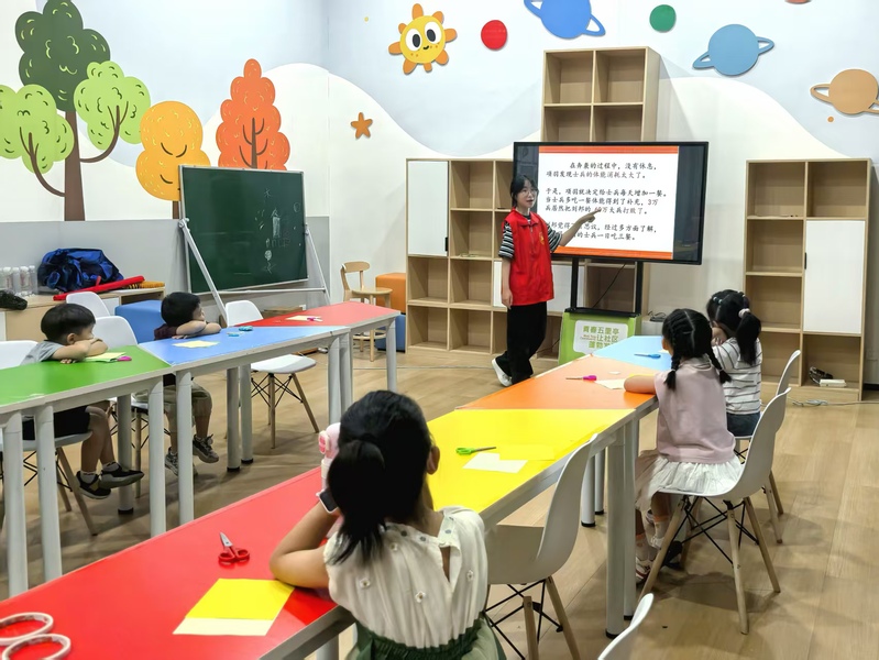 公益课堂分为故事分享、互动体验与自由创作三个环节,从倾听、思考到实践,层层递进,令节约粮食的理念深入人心。活动以《朱子家训》选段引入,用经典文学唤醒儿童对物质价值的初步认知。在故事分享环节,志愿者介绍了袁隆平的生平故事与一日三餐的由来,带领孩子们感悟粮食的重要性与生产中的种种不易。