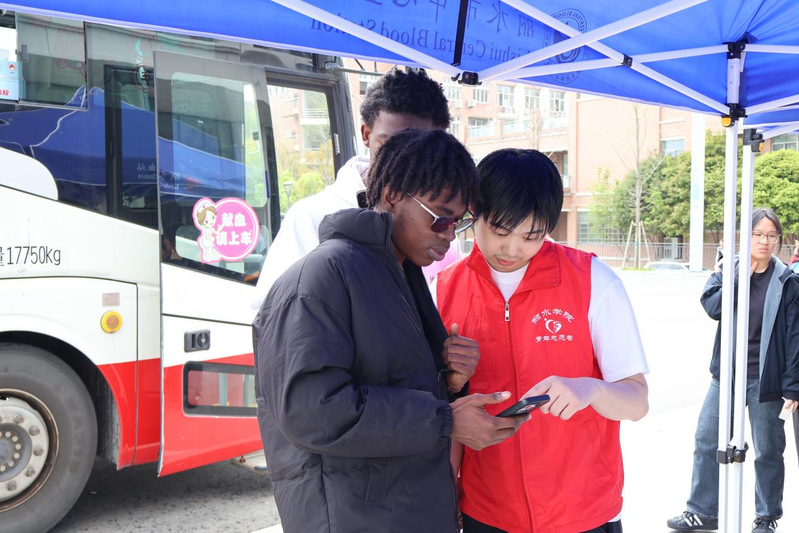 活动现场不仅设置了手工拼豆、幸运转盘等趣味互动环节,还为2025年底参与“热血天团”的47位献血学生设置了专属抽奖活动。惊喜满满的互动,既是对献血者爱心善举的暖心回馈,也让无偿献血的荣誉感与获得感深入人心,持续点燃了现场师生的公益热情。值得一提的是,本次活动还吸引了我校留学生群体踊跃参与。他们以无国界的爱心,为这场春日热血行动增添了温暖而动人的一笔。