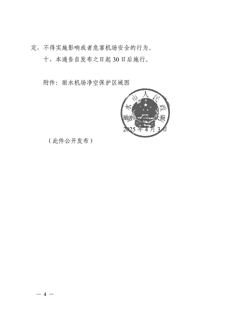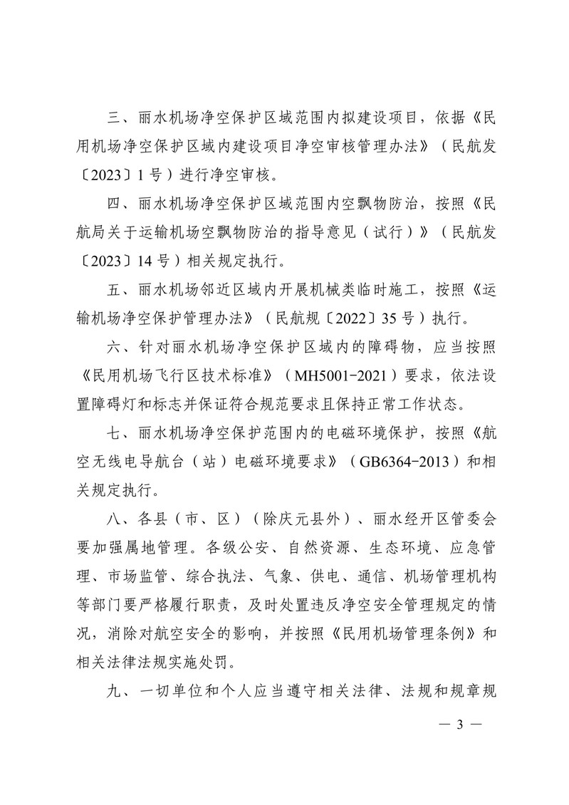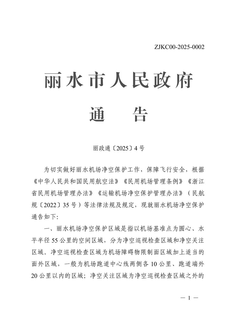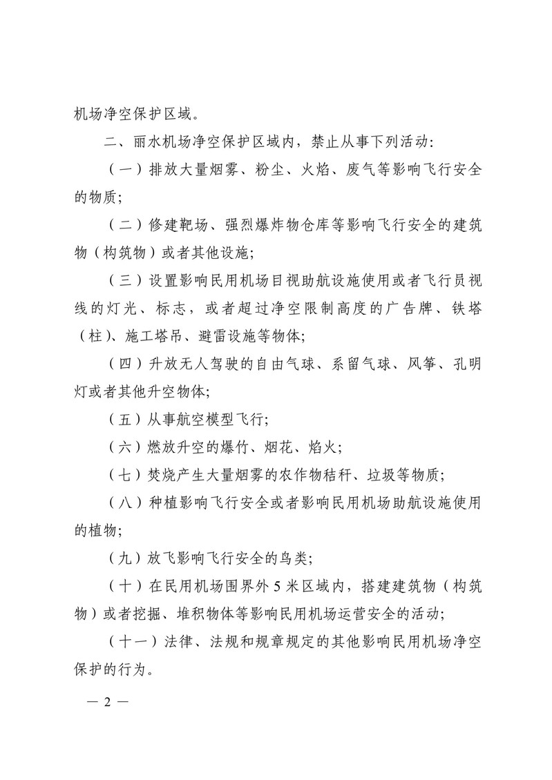 转发丽水市人民政府关于丽水机场净空保护的通告(黑章)