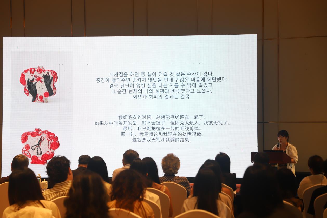 专题交流深耕“陶瓷文化教育与发展”,来自丽水学院、中国美术学院、清华大学、四川美术学院、上海大学、上海工艺美术学院及韩国弘益大学、韩国同德女子大学、韩国传统文化大学等国内外高校的15位青年学子,展示了他们在青瓷创作上的探索与成果。专家评委从技艺创新、艺术创意、文化内涵等维度进行了细致点评和专业指导,有效激发了青年学子的创作热情,为创新陶瓷艺术教学实践、拓展国际教育合作提供了有益探索。