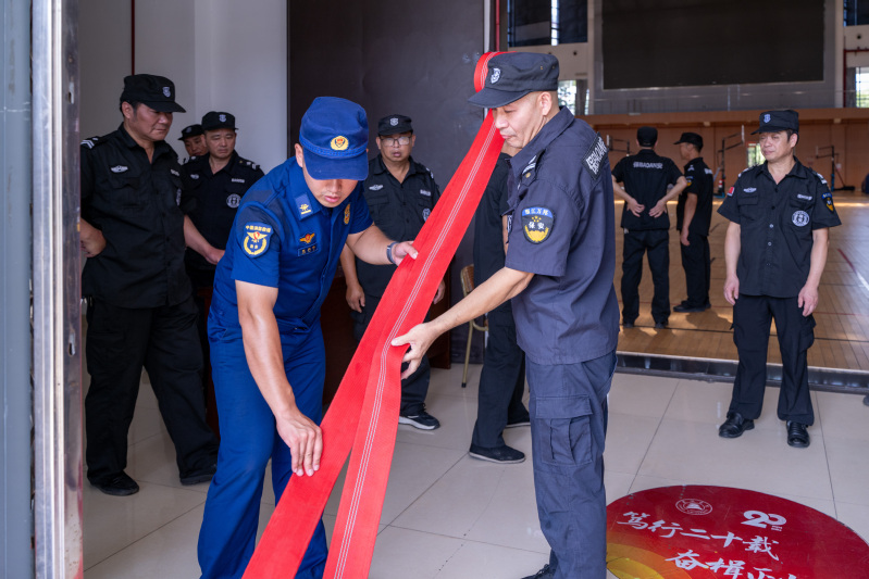 此次培训分上下两个半场,内容丰富且针对性极强。培训伊始,在教官的严格指导下,全体安保人员全身心投入到队列队形训练、警用器械规范使用、实战互动环节、消防技能提升等训练中。尽管正值暑期高温天气,烈日炎炎下,全体参训安保人员依旧精神饱满、态度认真、行动迅速,展现出了极强的责任心和担当精神。