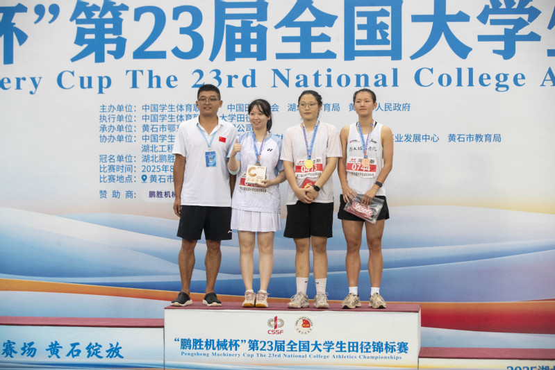 我校田径队在领队刘俊峰和教练员王际燕、杨继滔、陶初锋、薛露的带领下,面对高温和频繁降雨的不利天气,力克困难、全力以赴,展现出顽强拼搏、超越自我、追求卓越的体育精神。医学院口腔医学234班李解同学斩获甲组女子标枪冠军;教师教育学院体教222班罗健获得男子十项全能第三名;体教222班范奕俊同学在男子100米比赛中达到国家一级运动员标准。这一佳绩生动诠释了我校大学生的青春风采和昂扬风貌。