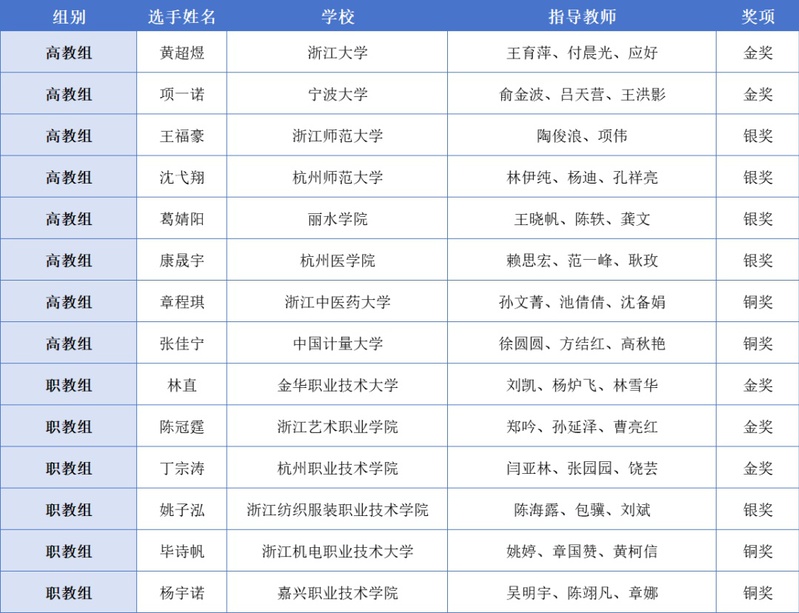 第二届全国大学生职业规划大赛全国总决赛成长赛道获奖名单(浙江部分)