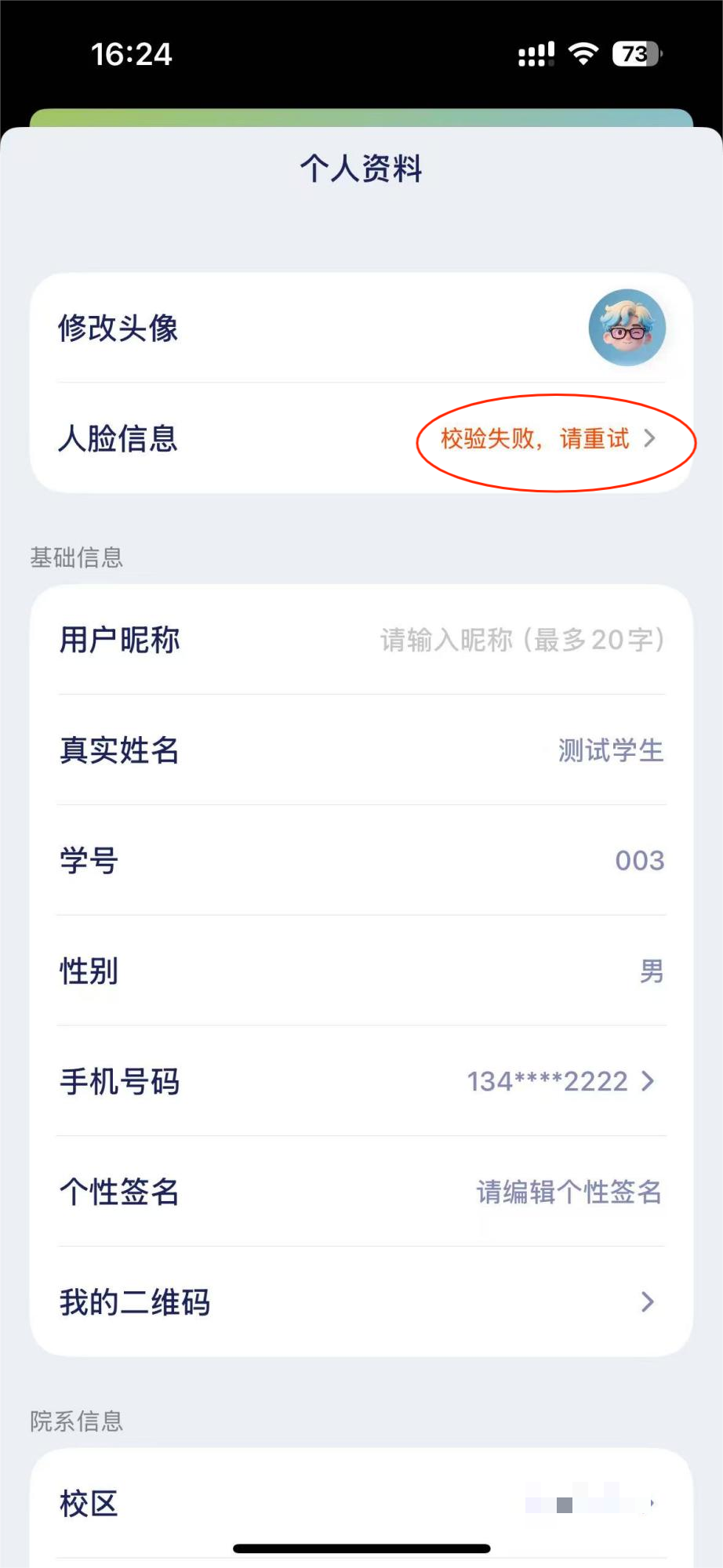 7.所有参与测试的学生,须先完成 “运动世界” APP的个人信息注册与头像上传;对于未能被测试仪成功识别的学生,体质测试中心将予以拒测并劝返。