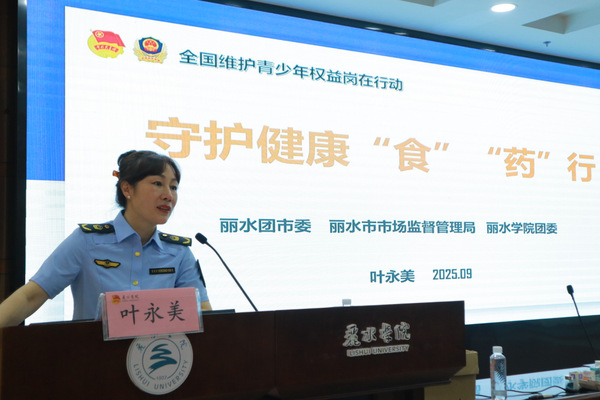 “守护健康‘食’‘药’行” 讲座则聚焦“饮食”与“药品”安全。丽水市市场监管行政执法二处叶永美处长,针对大学生日常“食品”、“药品”隐患识别等内容,结合实际案例,围绕常见药品使用误区、处方药与非处方药区分、滥用药物危害等知识点进行详细科普,提醒同学们重视用药安全,避免因不当饮食和用药损害健康。