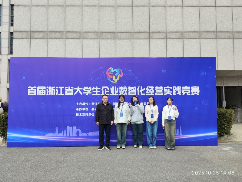 近日,由浙江省教育厅、浙江省大学生科技竞赛委员会主办,嘉兴大学与上海财经大学浙江学院联合承办的首届浙江省大学生企业数智化经营实践竞赛决赛答辩及闭幕式在上海财经大学浙江学院圆满落幕。本次竞赛吸引了全省44所本科高校271支队伍、39所高职院校175支队伍,共计1700余名选手同台竞技。商学院选派的由乔思洁、胡佳悦、何简、周彤四位同学组成的代表队表现优异,以扎实的专业功底与出色的数智化实践能力脱颖而出,勇夺本科组一等奖;另有两组同学分获三等奖,创下该院参与该赛事以来的历史最佳成绩。