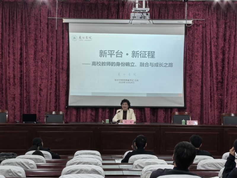 10月24日,校党委副书记王赳以“新平台·新征程——高校教师的身份确立、融合与成长之路”开讲,结合学校办学理念与育人使命,为新教师阐释高校教师的责任担当;丽水市第二医院原副院长夏朝云围绕 “大学教师心理健康维护与调适”,结合案例讲解压力管理与情绪调节方法,为新教师筑牢心理防线。