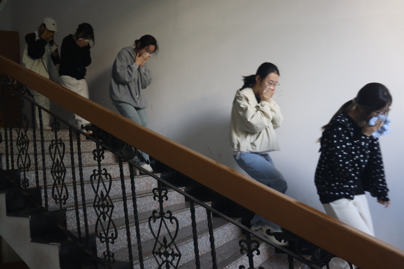 为强化师生在紧急情况下的实际操作能力,学院专门组织了消防应急疏散演练,演练模拟宿舍楼发生火情。随着警报响起,学生在工作人员的指引下,弯腰低姿、捂住口鼻,沿指定路线快速有序疏散至安全地带。演练结束后,现场讲解了灭火器的正确使用方法,并让师生代表参与实操体验,有效提升了师生应对突发火情的实战能力。