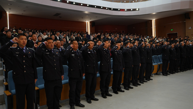 庄严的宪法宣誓仪式在大会堂举行。来自县有关单位的中层干部及新入职人员面向国旗与宪法,紧握右拳,庄严宣誓。誓言铿锵,气氛肃穆,现场师生深刻感受到宪法的权威与尊严。随后的专题宣讲环节,司法局工作人员系统阐释了宪法的核心地位与公民权利义务;县公安局反诈中心民警则结合高校实际案例,讲解了实用的防诈技巧,将宪法保护与生活安全紧密联系,提升了师生的法治应用能力。