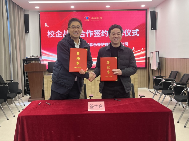 随后,地方合作处负责人代表学校与丽水崇孝乐养护理院有限公司签订合作协议。